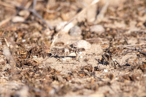 "jugendliche" Waldgrille. Für das typische Zirpen von Feld- und Waldgrille war es noch zu früh. Einige Stunden nachdem die Exkursion vorbei war, begann erst ihr Konzert.