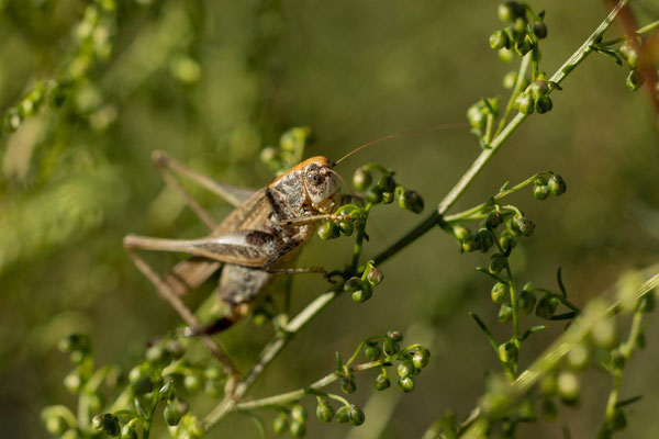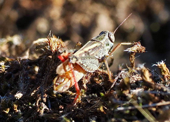 Und da, wo es warm ist und entsprechende Vegetation sich ansiedelt, fühlen sich auch die Heuschrecken sehr wohl.